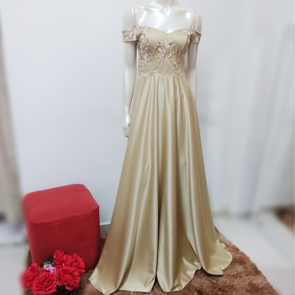 Vestido de Festa Dourado Elegante Longo Modelo Especial