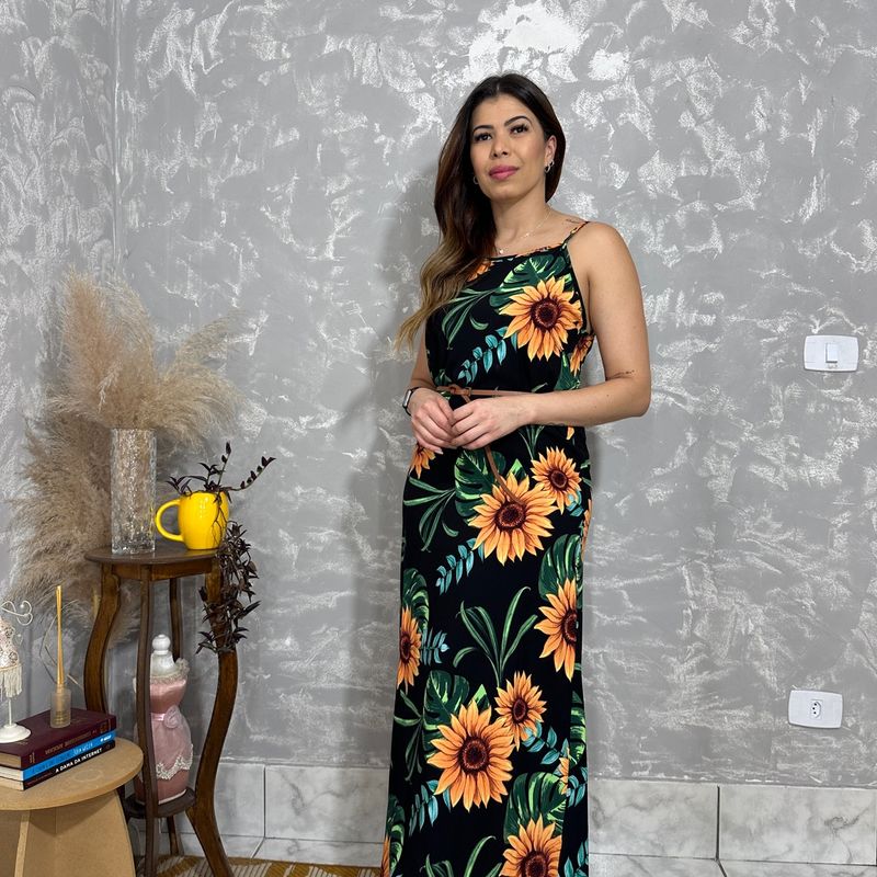 Vestido Longo Estampa Girassol 4580 Vestido Feminino Dassi Usado 92764600 enjoei
