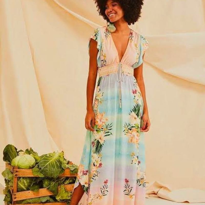 Vestido Longo Horizonte Florido Farm Rio Mega Desejo Vestido