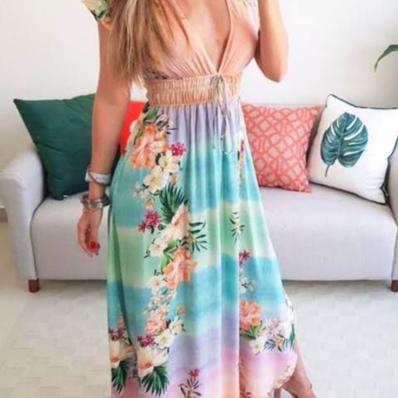 Vestido florido R 145.00 cor Multicolor longo estampadao
