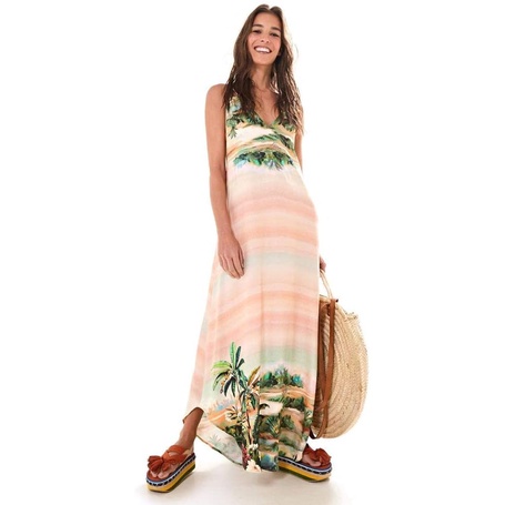 Vestido Longo Horizonte Florido Farm Rio Mega Desejo Vestido