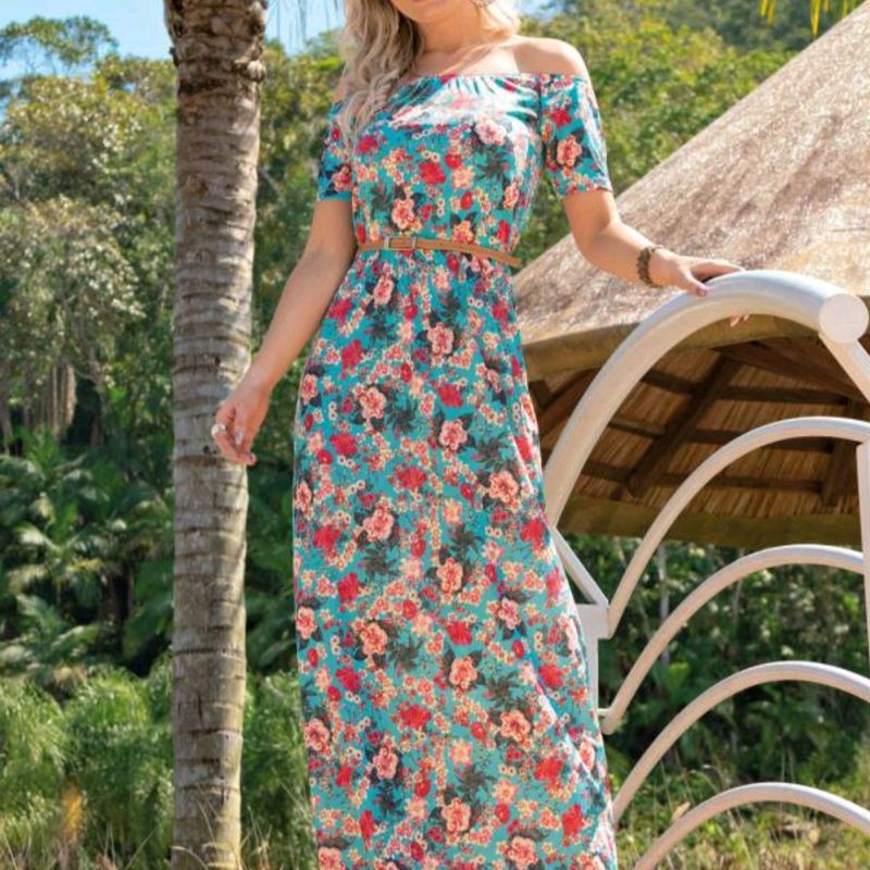 Vestidos floridos da clearance moda, Vestido Longo Florido Moda Evang lica Gg Vestido Feminino clearance
