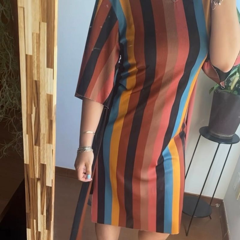 Vestido Zara Listrado Rosa Laranja e Azul 36 Rehabita Brech