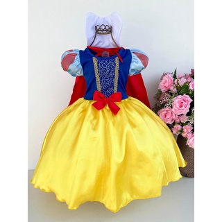 Vestido da branca clearance de neve curto, Vestido Fantasia Infantil Branca de Neve Tiara Capa Luxo clearance