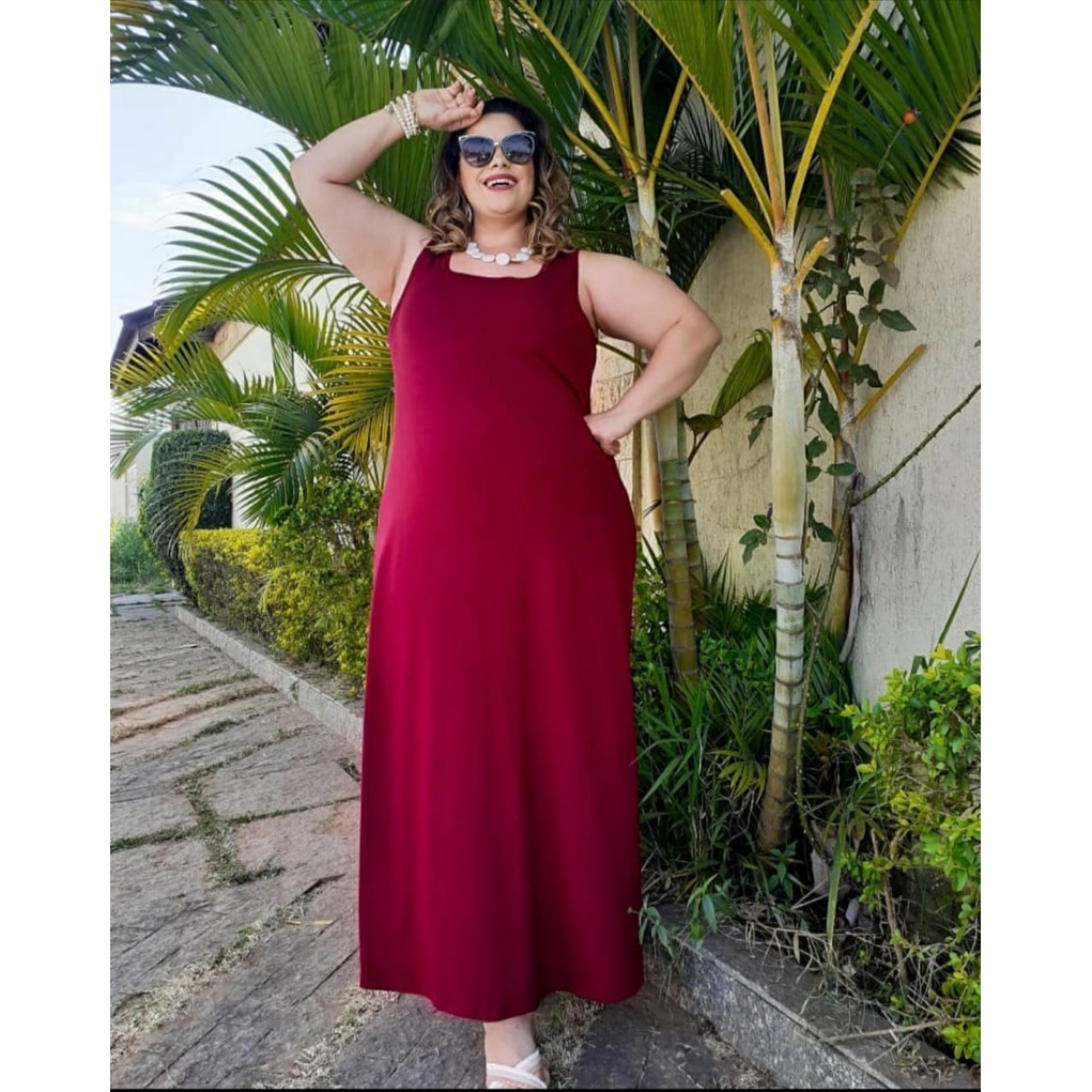 Vestido regata longo clearance de malha, Vestido Longo Plus Size Soltinho Regata Manga Curta Malha Veste at 58 clearance