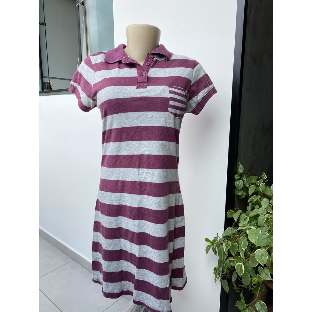 Vestido Curto Manga Curta Gola Polo Listrado hering Vestido