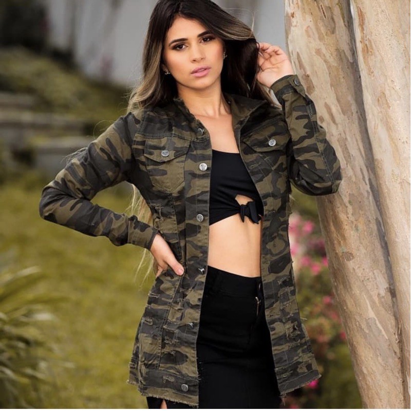 Camisa jeans camuflada clearance feminina