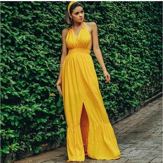 Vestido Longo Com Abertura Na Frente Decotado Costas Nua Shopee