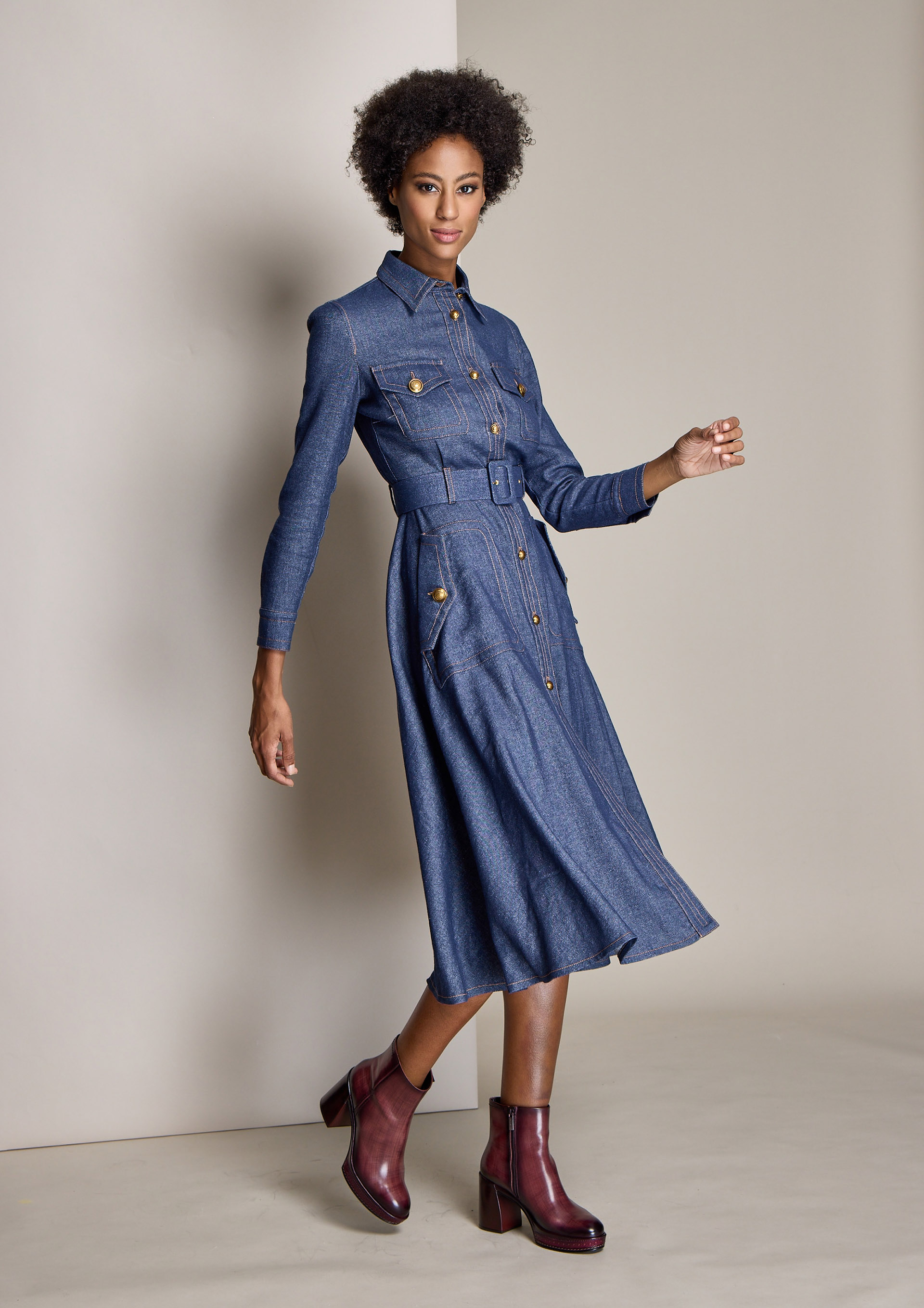 Vestido clearance modelo evase, Vestido tejano evas clearance