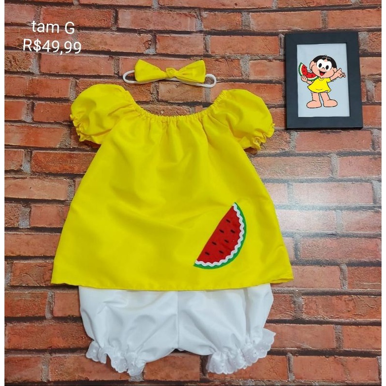 Roupa da magali clearance de 1 ano, Fantasia Beb Magali Turma da M nica com Bolsa SACOLA DO BEB clearance