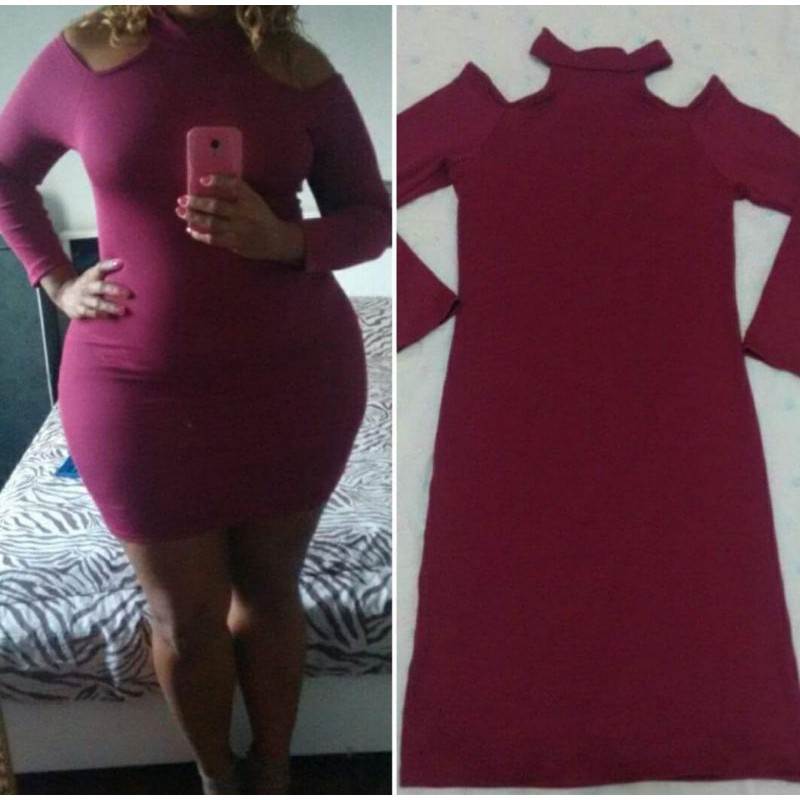 Vestido Justo de manga Cor Vinho tamanho nico Vestido midi feminino