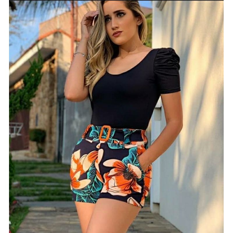 Bermuda Feminina Soltinha Cintura Alta Marmorizada Bamborra