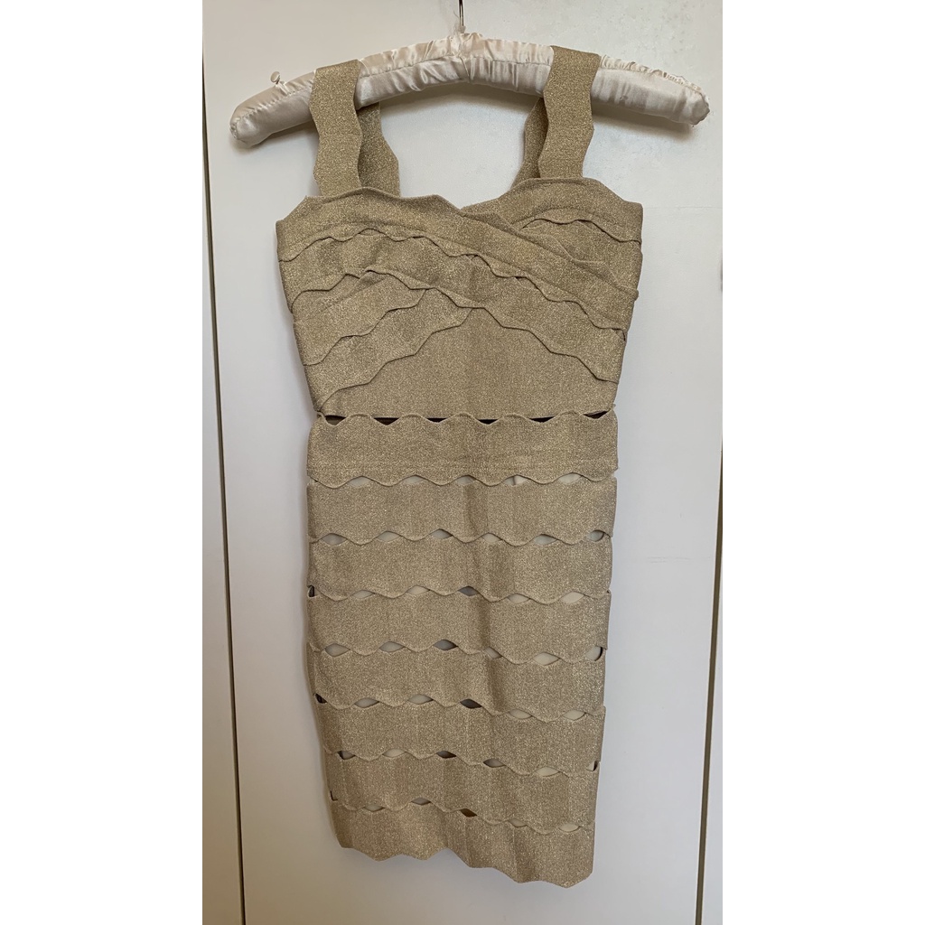 vestido de festa dourado curto de bandagem festa 15 anos ou fim de