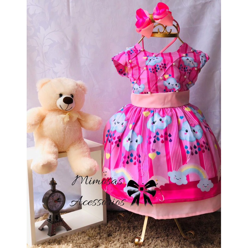 Vestido Infantil Chuva Rosa de Amor Chuva de Ben os