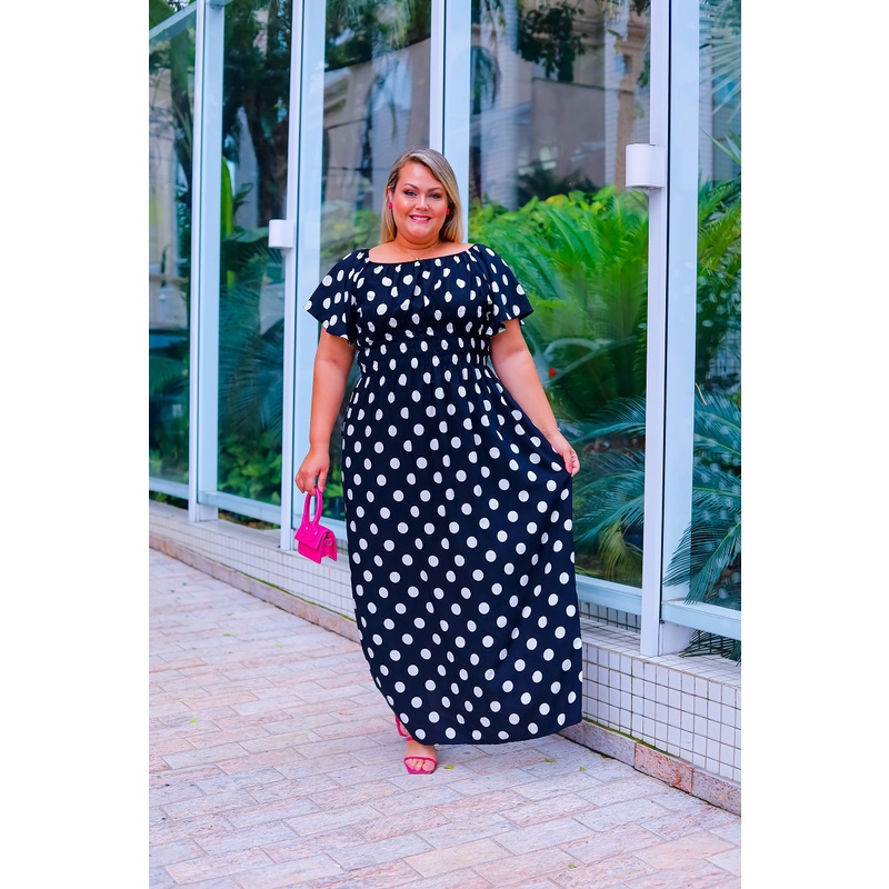 Vestido Feminino Longo Plus Size Estampa Exclusiva Manga Gode moda