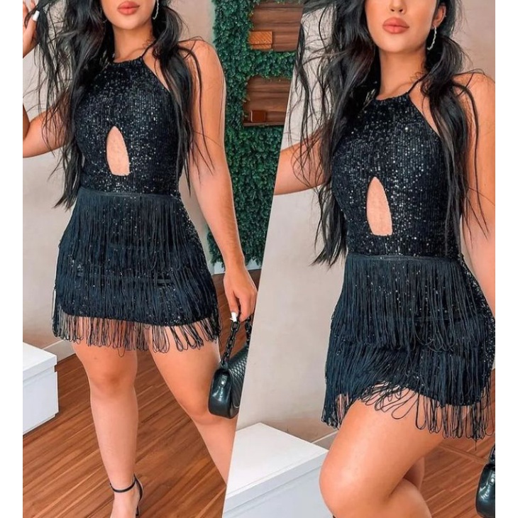 Vestido de paete clearance com franja, Code Be Paete Franja Saia courino de franja top clearance