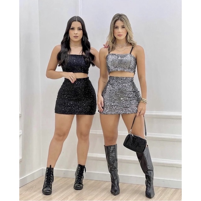 Conjunto Saia e Top Al a Paete Brilhoso Moda 2024 Shopee Brasil
