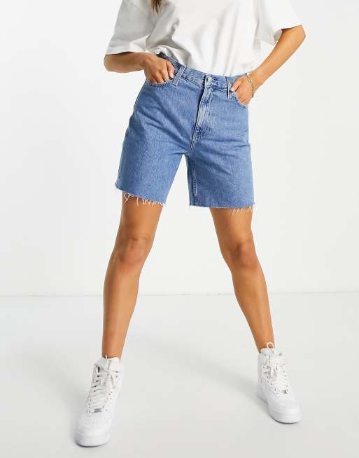 Calvin Klein Jeans Bermuda mom short in mid wash ASOS