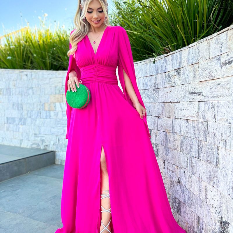 Vestido Longo Pink Crepe Sed Casamento Festa Madrinha Vestido