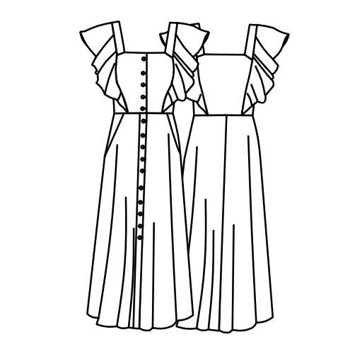 KIT DE MOLDES DE VESTIDO MIDI COM ABOTOAMENTO NA FRENTE E BABADO
