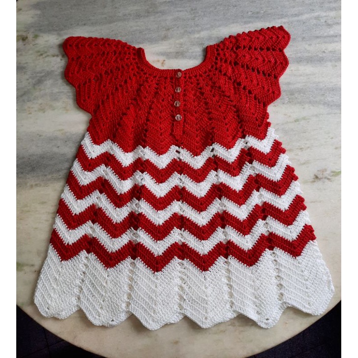 Vestido Infantil de Croch Vermelho e Branco 2 a 3 anos