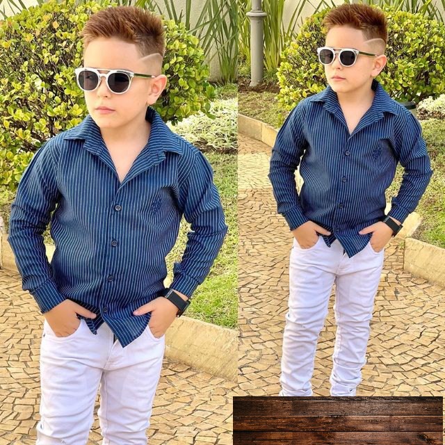 Roupa Menino Infantil Camisa Manga Longa Marinho Fio Tinto Cal a Color Branco