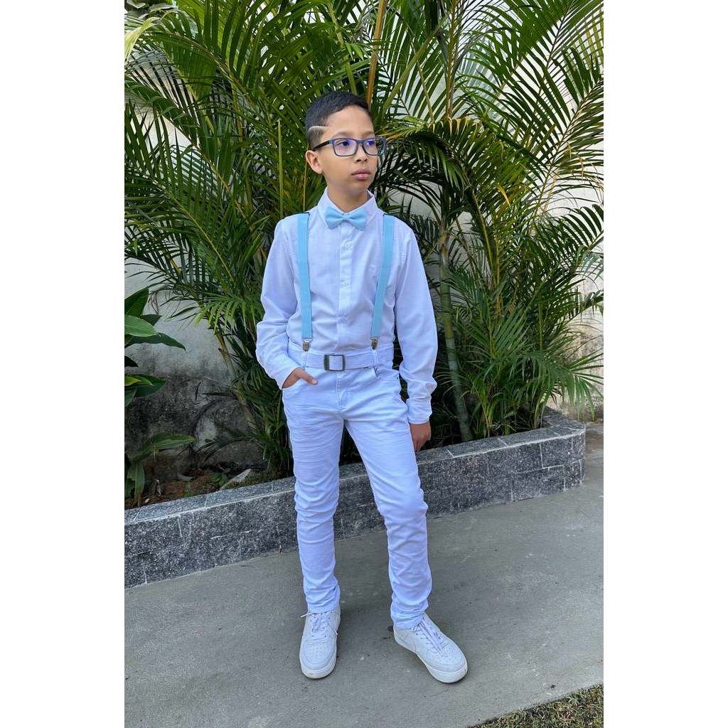 Conjunto Infantil Roupa Para Batizado Menino Com Camisa Social Gravata e Suspens rio