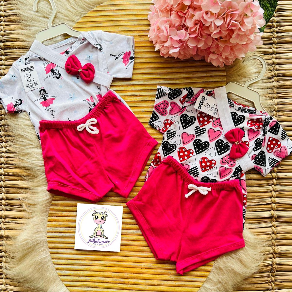 Conjunto Kit Body Shorts Faixa Infantil Bebe Menina At 4 Meses