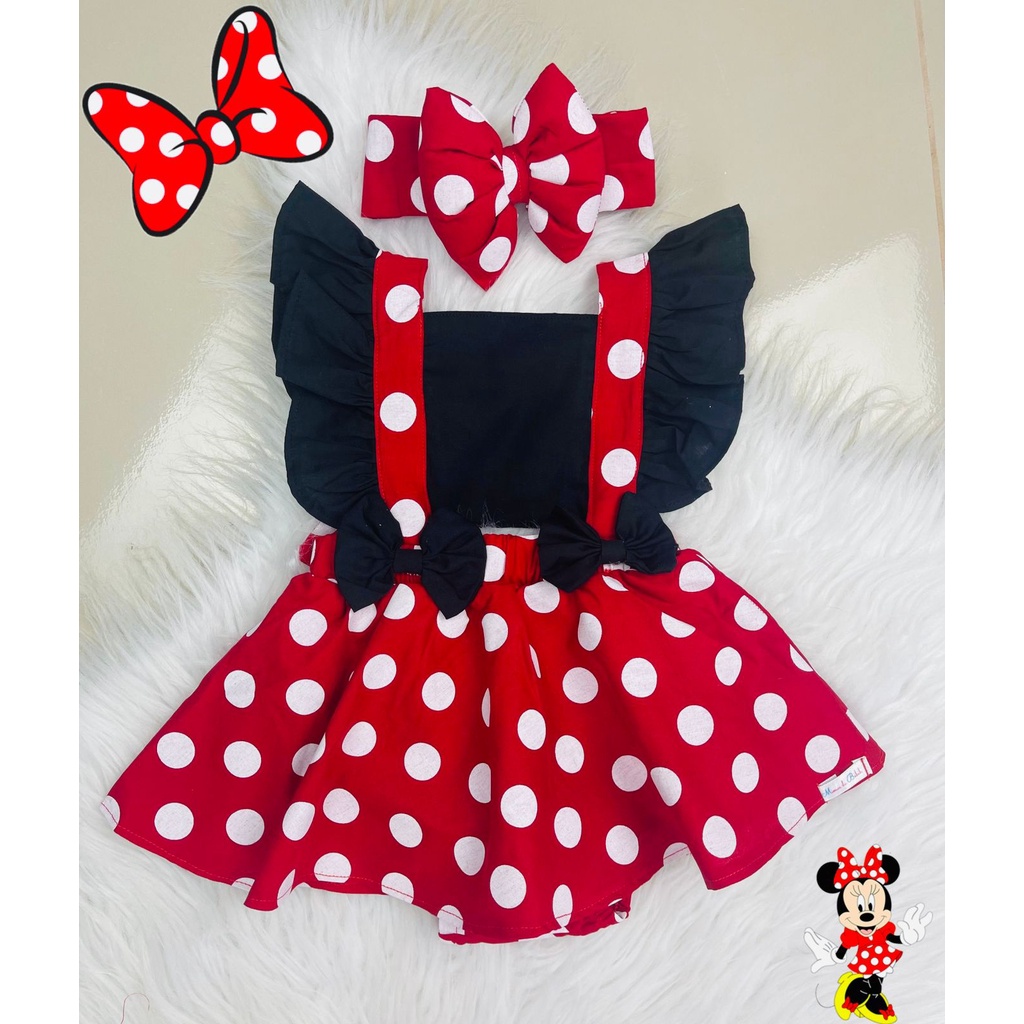 Jardineira Body Romper Conjunto Saia Macac o Minnie Vermelha Roupa De Bebe Menina Infantil Blogueirinha Mesversario Fantasia Fotografia