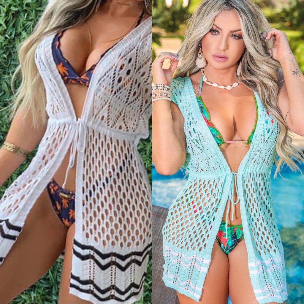Kimono de croche clearance para praia