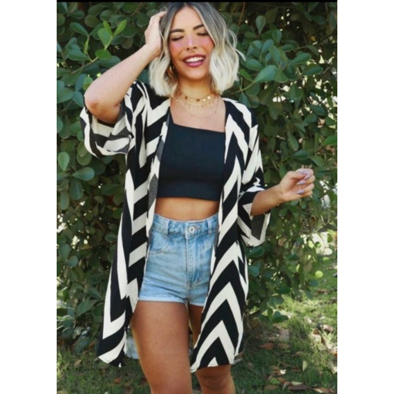 Kimono clearance feminino listrado, CONFEC O FEMININA Kimono Feminino Plus SIze Cardigan Tricor clearance