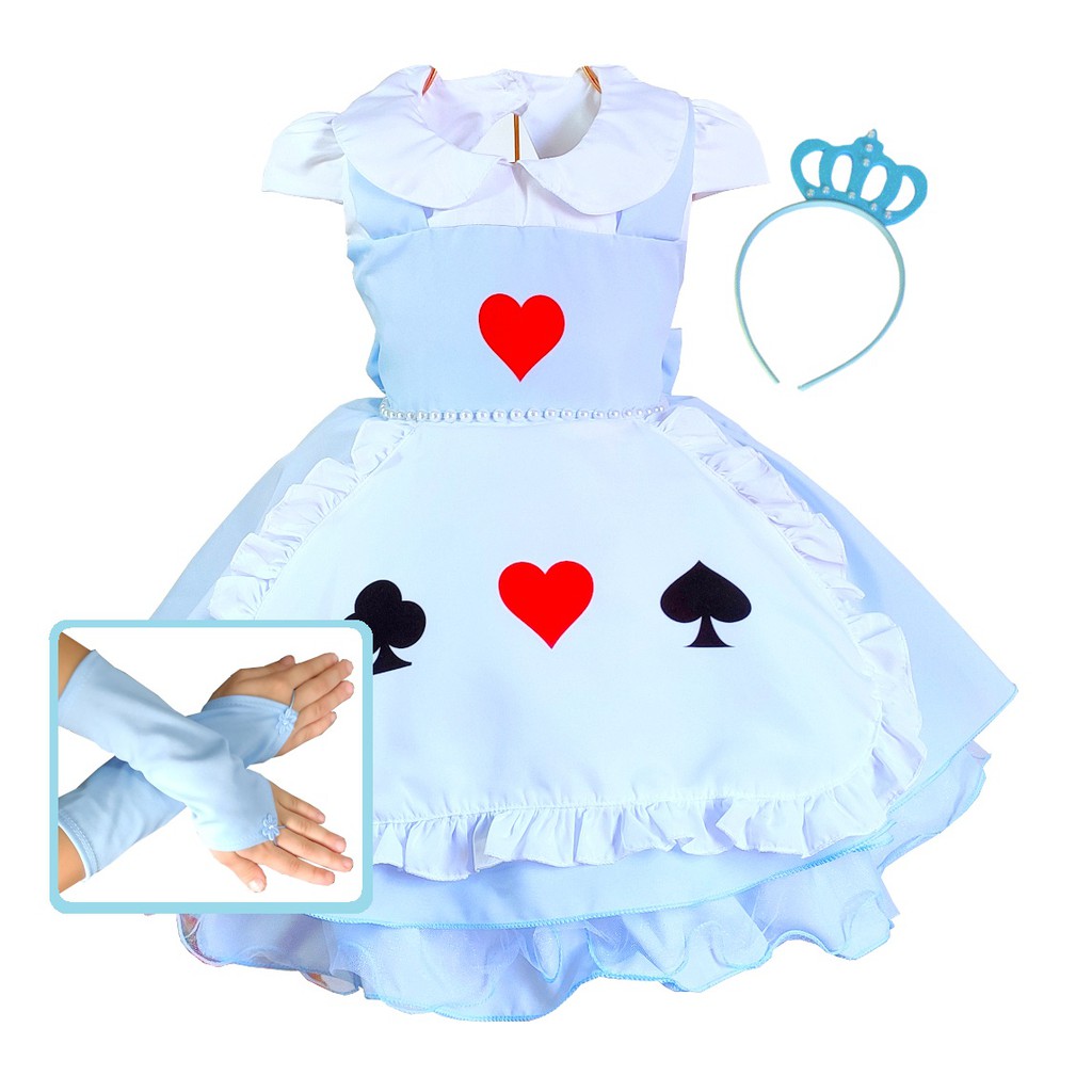 Vestido de alice no clearance pais das maravilhas infantil, Vestido Infantil Alice no Pa s das Maravilhas Tem tico de Festa Com Coroa E Luvas de Luxo clearance