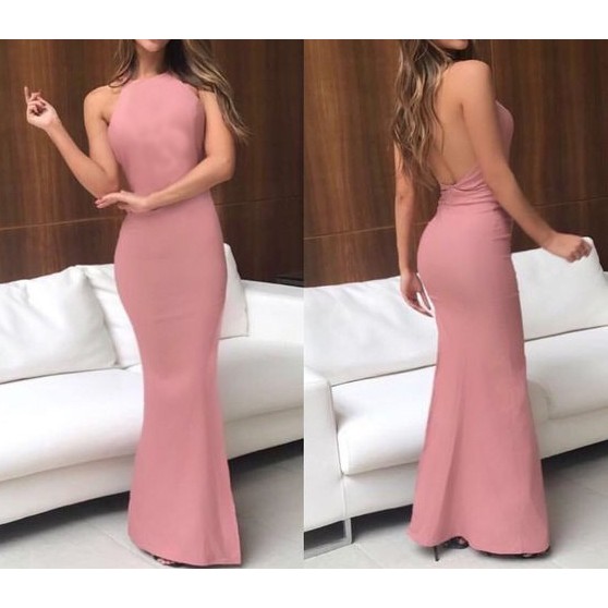 Vestido madrinha rose longo festa formatura casamento costas nua N131