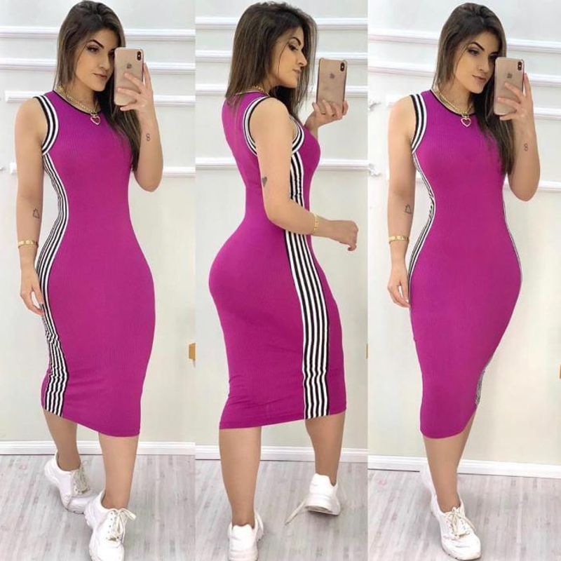 Modelos de vestidos clearance com listras, Vestido Midi Canelado com Listras Lateral Modelo Novo Vestido Feminino Canelado Nunca Usado 58794517 enjoei clearance