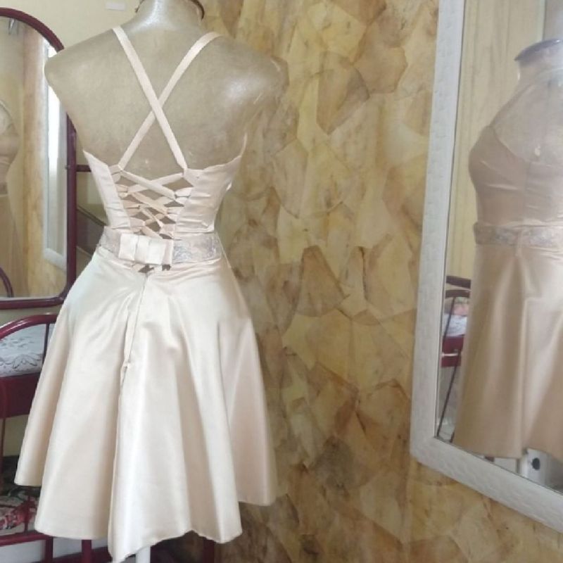 Vestido de Festa Dourado Perolado Cetim Cinto La o Chanel para