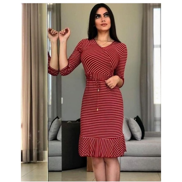 Vestido Midi em Malha com ajuste at na cintura manga 3 4