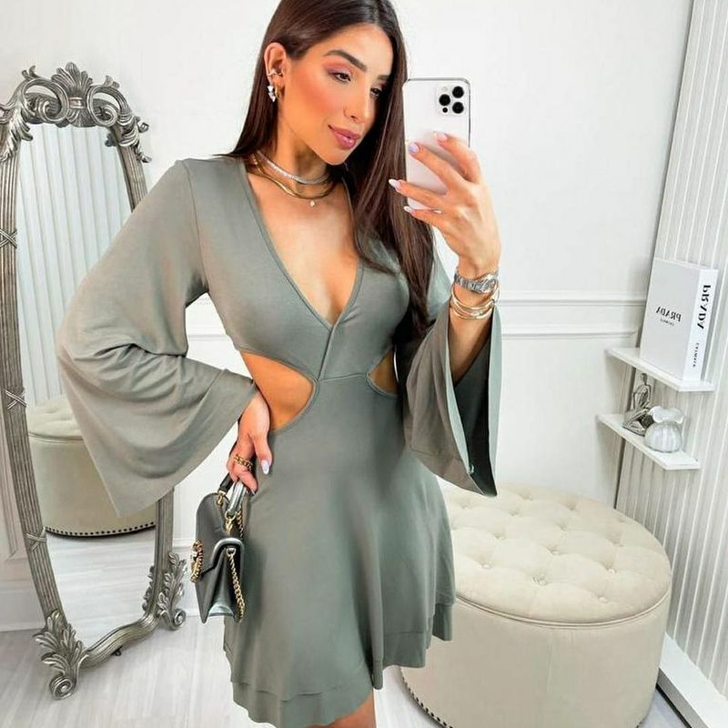 Vestido Curto Elaborado em Malha com Vazado Na Barriga e Mangas Flare. Vestido Feminino Cila Martini Nunca Usado 66772104 enjoei
