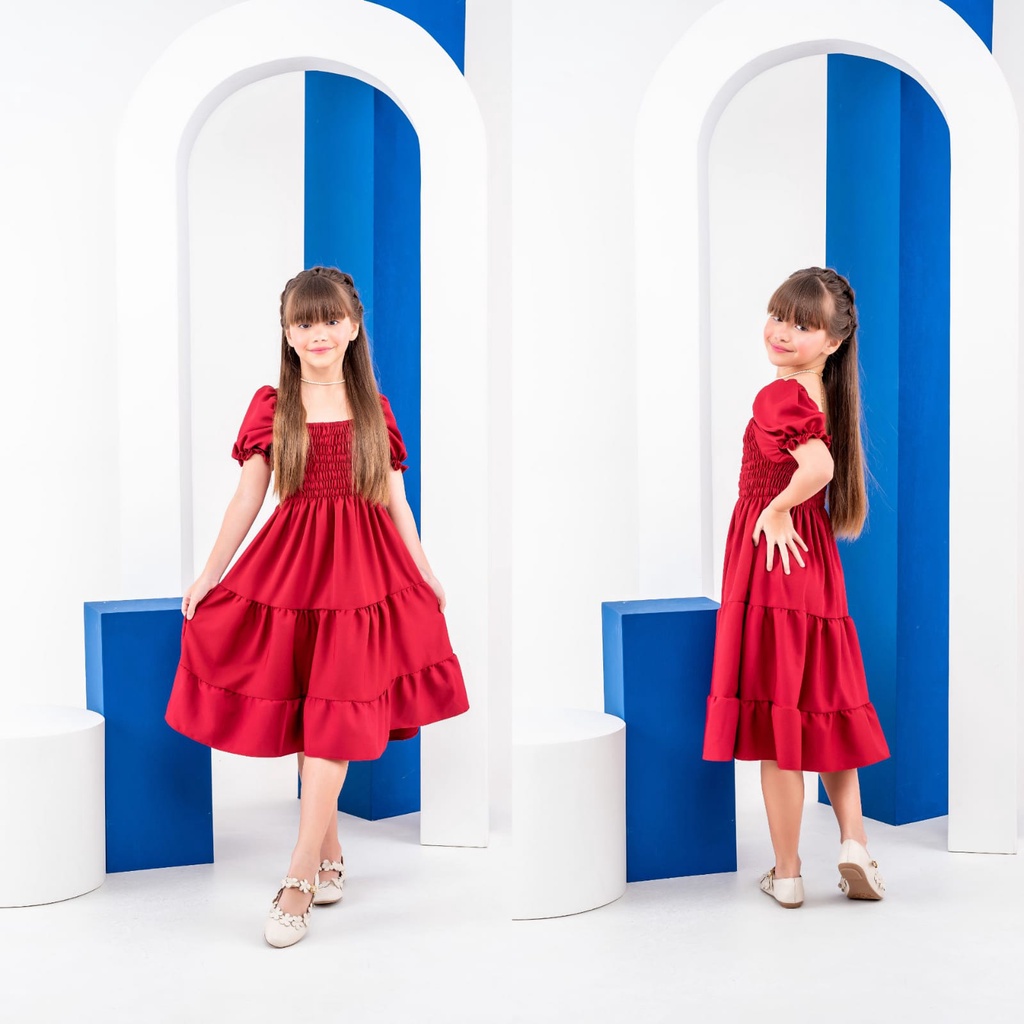 Vestido Infantil manga princesa e lastex no busto 2 ao 14