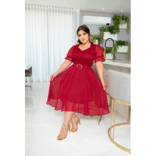 Vestido Midi Rodado Musseline Seda Po com cinto Moda Evang lica Modesta