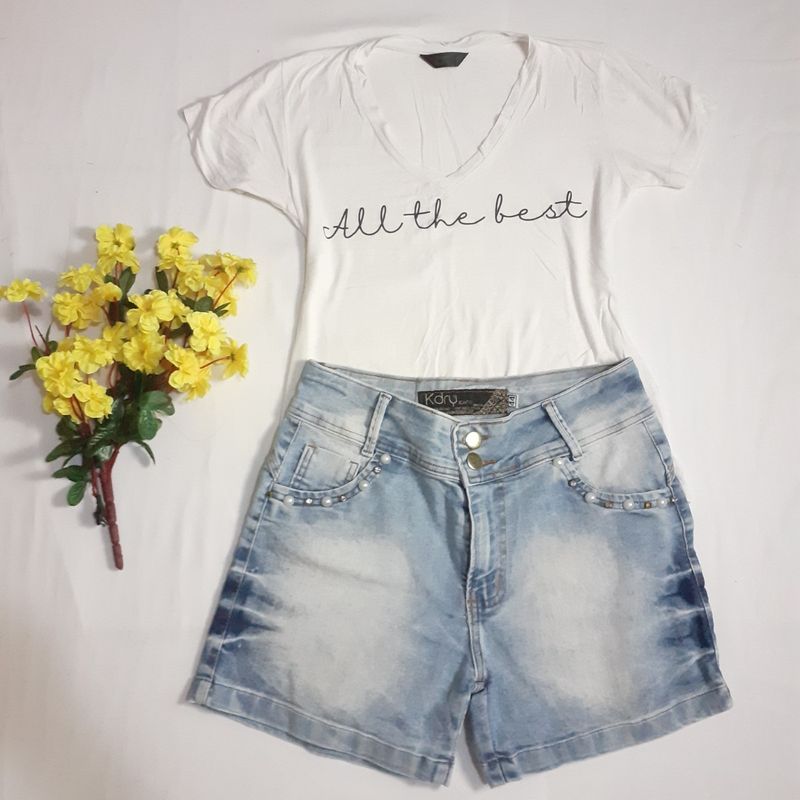 Short jeans com clearance camisa branca, Conjunto Camisa Branca e Short Jeans Camisa Feminina Maria clearance
