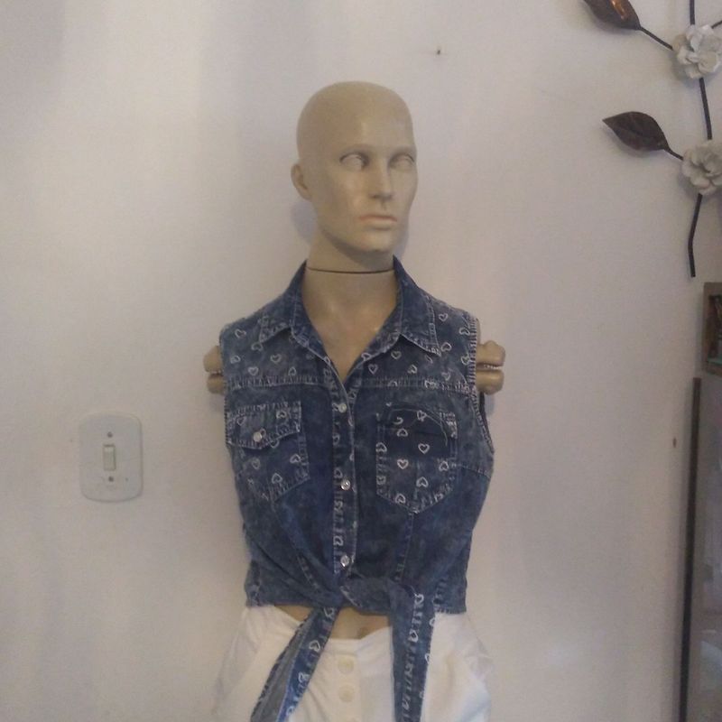 Camisa sem Mangas em Jeans de Amarrar Na Cintura Ms Fashion