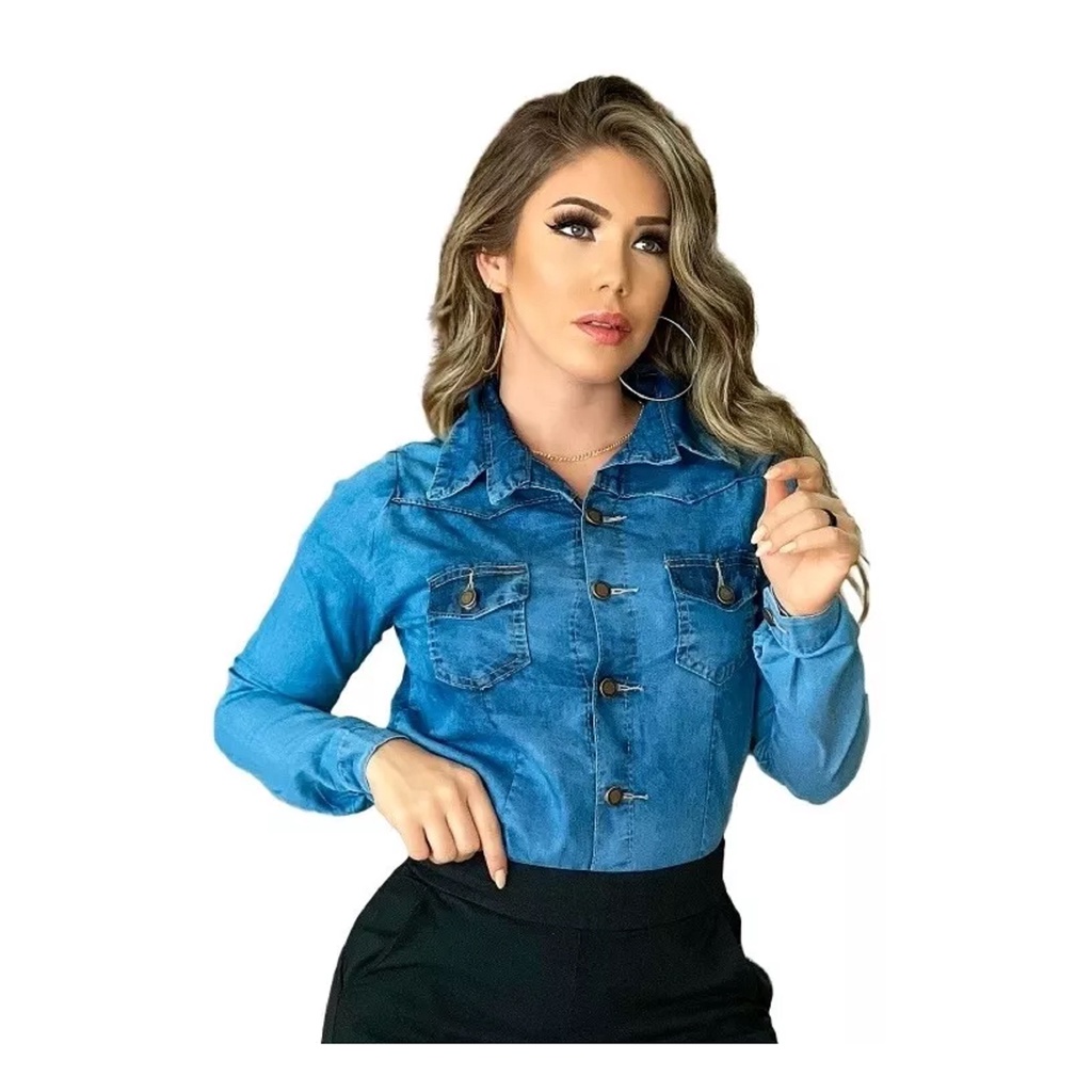 Camisa Jeans Feminina Manchada Lan amento Lemon Blue Jeans