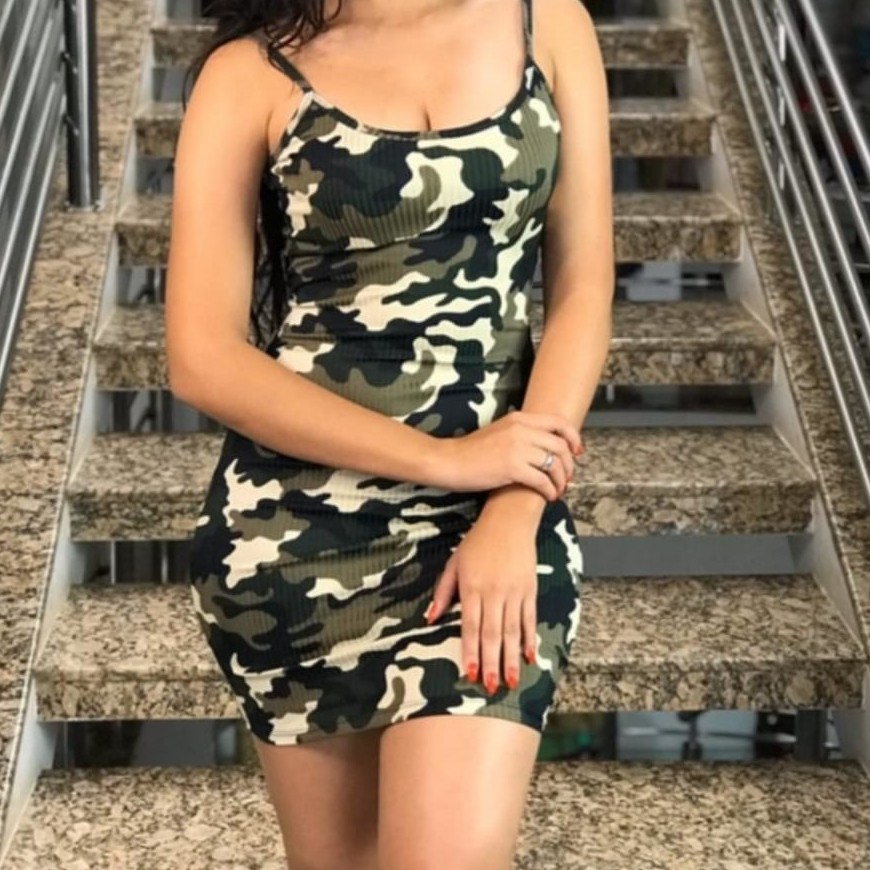 Vestido Camuflado Curto De Alcinha Canelado S Bojo Shopee Brasil
