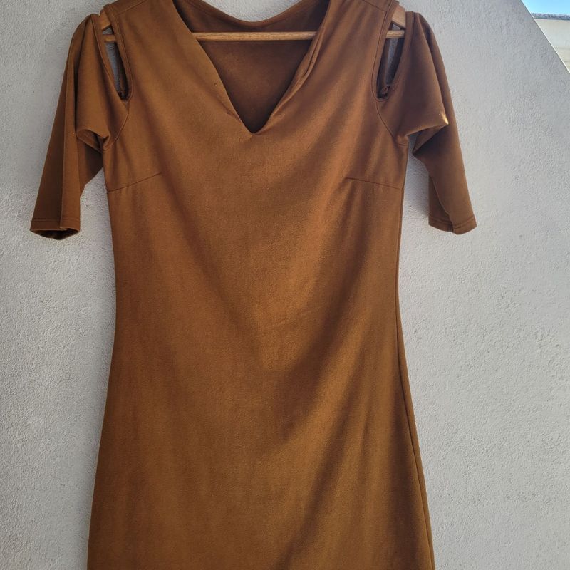 Vestido em suede clearance caramelo, Vestido de Suede Caramelo Mangas 3 4 Ombros Mostra Vestido Feminino Usado 75240175 enjoei clearance