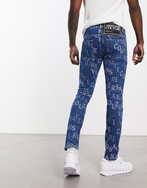 Versace Jeans Couture Jeans met herhaalde print in blauw