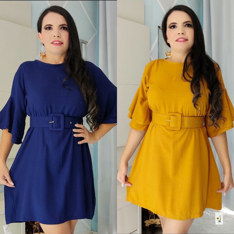 Vestido com Cinto e Mangas Shopee Brasil