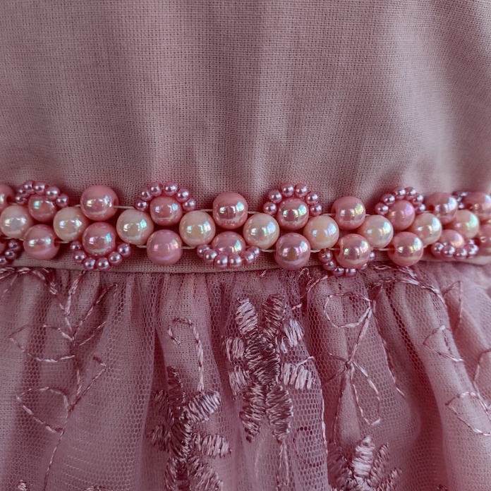 Vestido Infantil Rose Tule Paet Damas e Cinto de P rolas