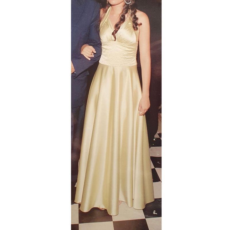 Vestido Longo de Festa Baile Ou Gala. Cor Dourado Acetinado