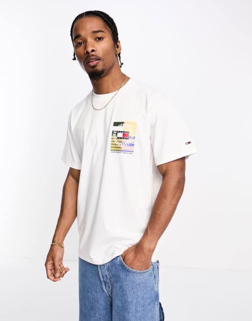 Tommy Jeans Ruimvallend T shirt met grafisch vlaglogo in wit ASOS