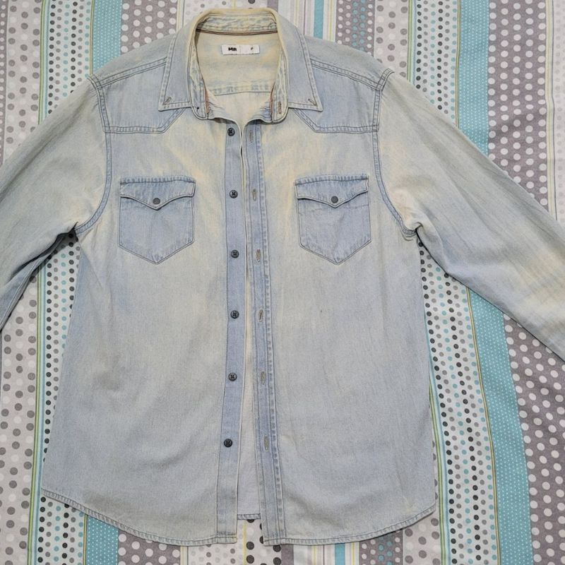 Camisa jeans manchada clearance masculina, Camisa Jeans Azul Clara Manchada Tamanho P Camisa Masculina clearance
